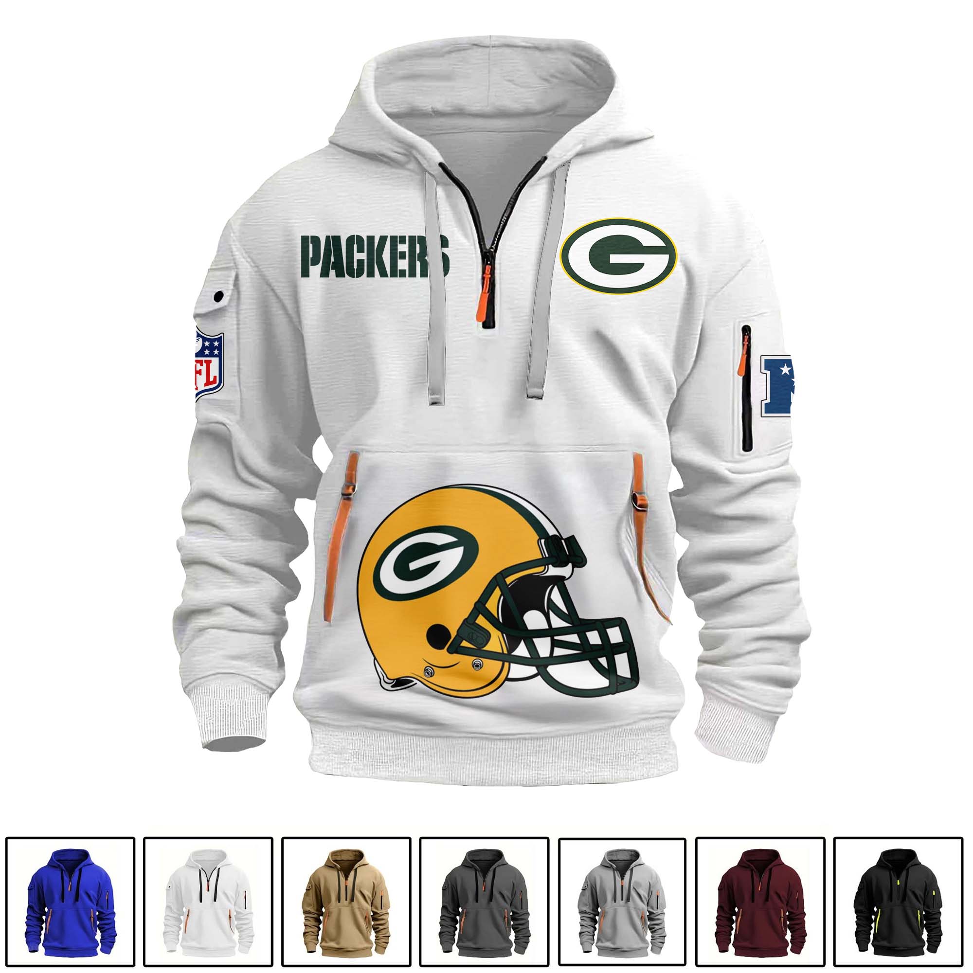 Categories: Green Bay Packers, NFL, Quarter Zipper Hoodie